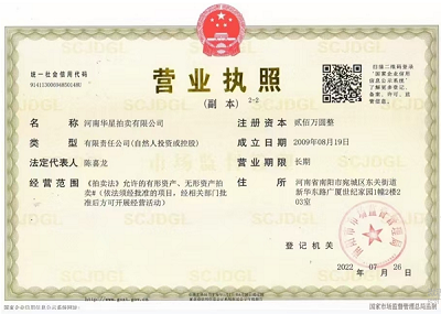 2013年7月取得南陽市人民政府指定、河南省財政廳頒發河南省公物拍賣資格證書